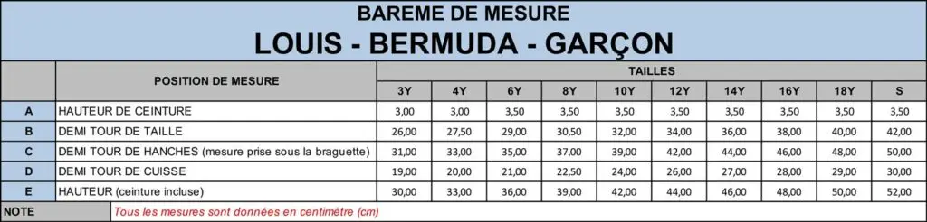Disponible en bleu marine, le bermuda LOUIS s’adapte à tous les styles et à toutes les saisons. Il est proposé en plusieurs tailles, du 3 au 18 ans. Pour un ajustement optimal, nous vous invitons à consulter notre guide des tailles avant toute commande.