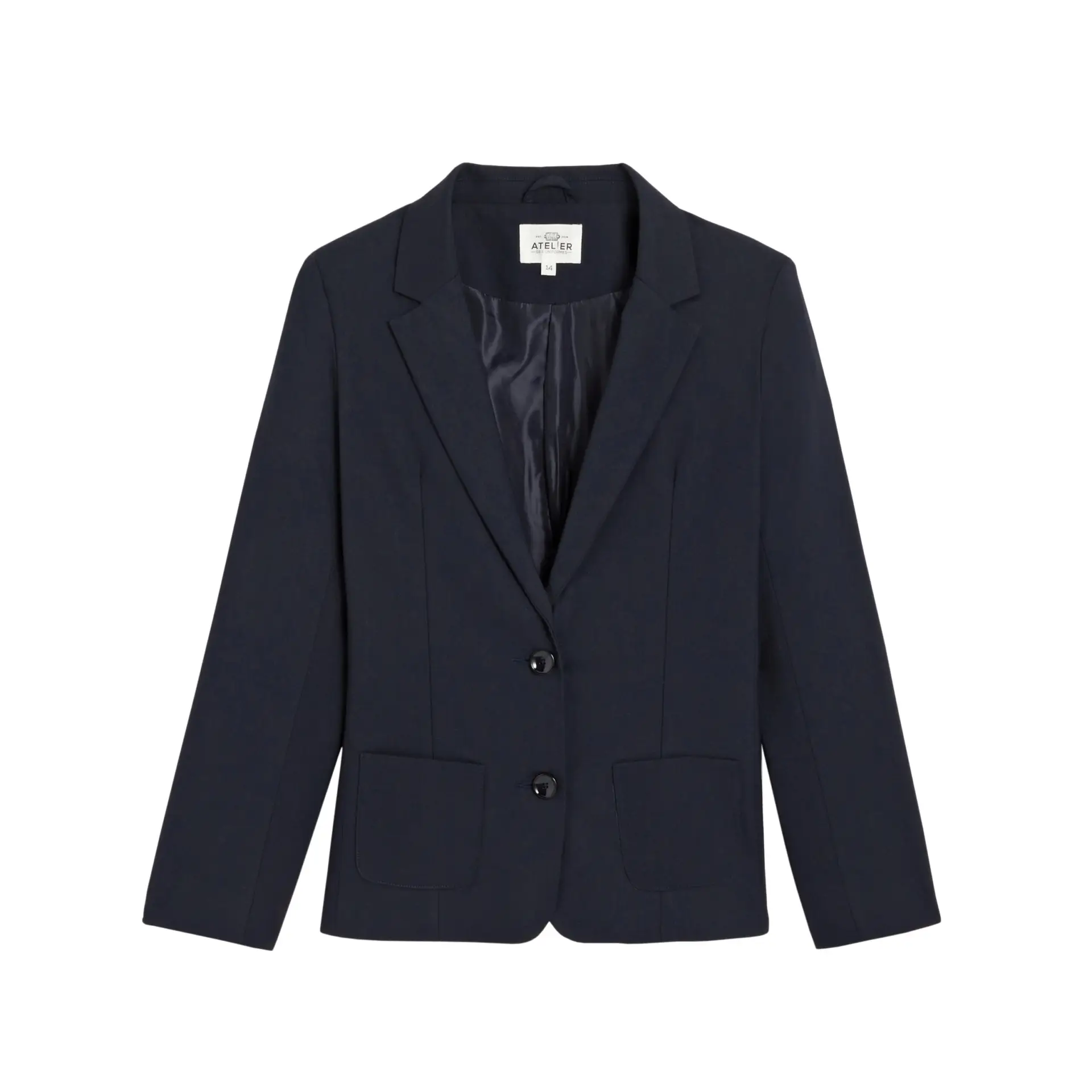 Notre blazer de collégienne bleu-marine BÉATRICE reprend la même forme que les blazer pour femme avec une coupe cintré. Il se ferme sur le milieu devant par deux boutons. Il a deux poches plaquées sur les bas-côtés ainsi qu’une fente sur le bas du milieu dos. Le pli d’aisance sur l’intérieure de la doublure offre plus de confort. Le cordon cousu sur l’intérieur du col facilite l’accrochage au porte-manteau.