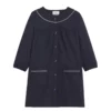 La blouse d’école fille MAYLIS est disponible en bleu ciel, bleu marine et rose. Un biais contraste vient agrémenter l’encolure et le dessus des poches.