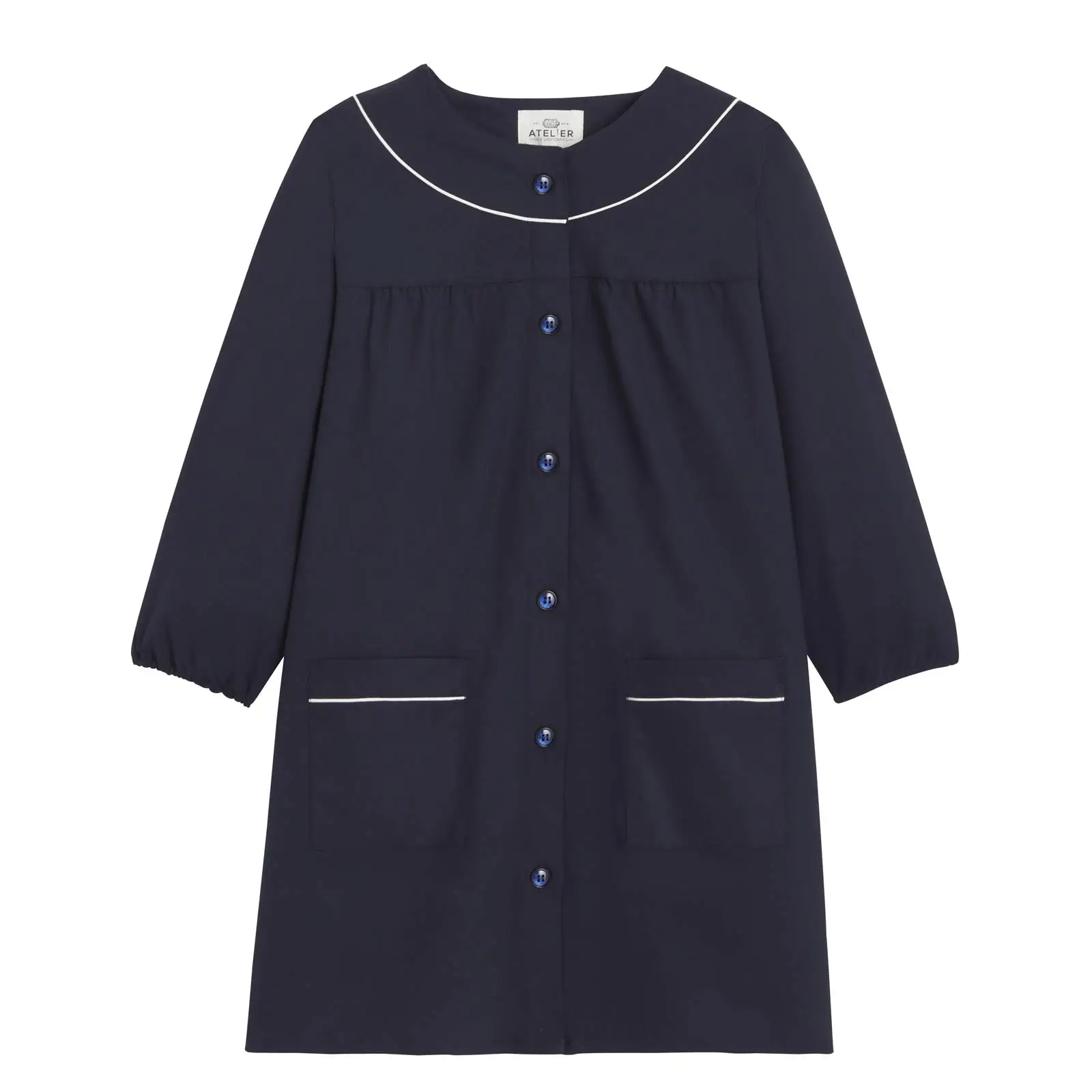 Notre blouse d’école fille MAYLIS a une encolure plate et dégagée et une patte de boutonnage sur le devant. Ses poignets sont élastiqués. Les deux poches plaquées sur le devant sont renforcées pour éviter tout déchirement. Le cordon cousu sur l’intérieur du col facilite l’accrochage au porte-manteau.