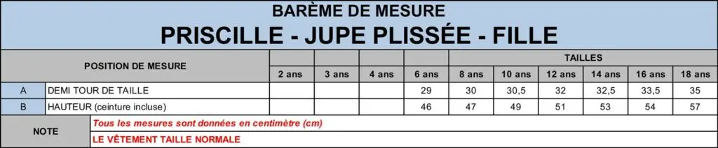 Disponible du 6 au 18 ans, avec un guide des tailles pour vous accompagner dans votre choix.