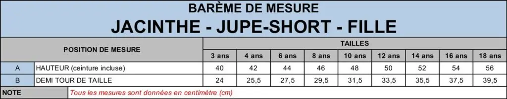 La jupe plissée JACINTHE est proposée en plusieurs tailles, du 3 au 18 ans. Pour un ajustement optimal, nous vous invitons à consulter notre guide des tailles avant toute commande.