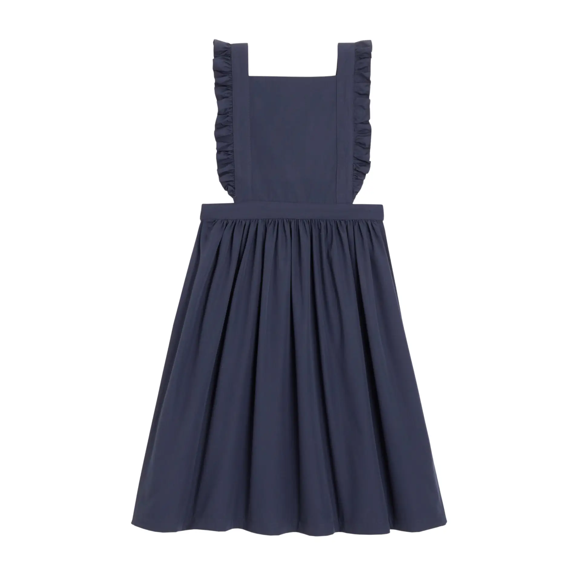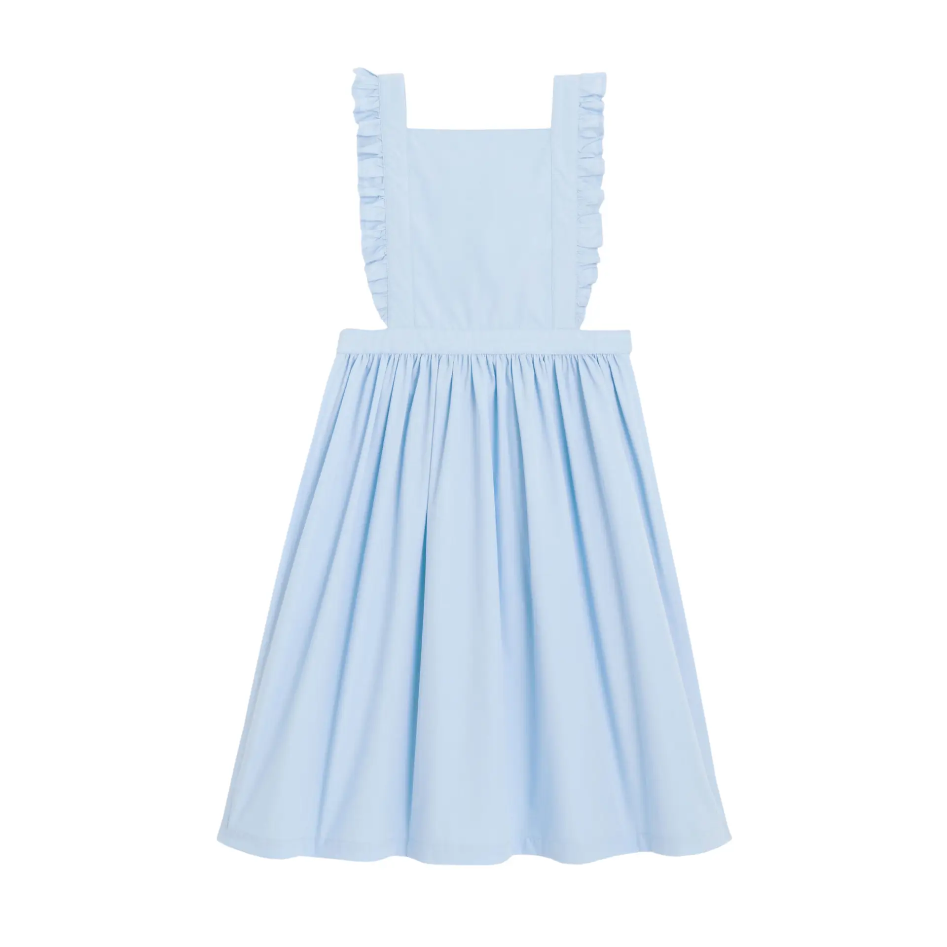 Notre tablier d’école fille DIANE a une forme chasuble Son encolure est carrée, plate et dégagée. Il est sans manches et les bretelles s’accompagnent de volants froncés pour un vrai look de princesse. Un bouton se trouve sur chaque côté de la ceinture pour un enfilage facile. La jupe est froncée sous la ceinture. Le cordon cousu sur l’intérieur du col facilite l’accrochage au porte-manteau.