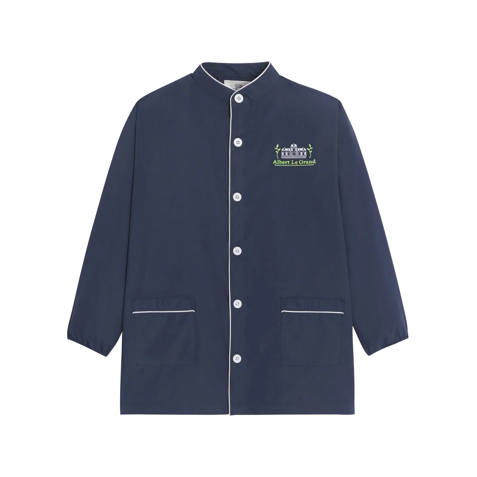 Notre tablier d’école PAUL au col Mao, a une patte de boutonnage sur le devant. Ses poignets sont élastiqués. Les deux poches plaquées sur le devant sont renforcées pour éviter tout déchirement. Le cordon cousu sur l’intérieur du col facilite l’accrochage au porte-manteau.