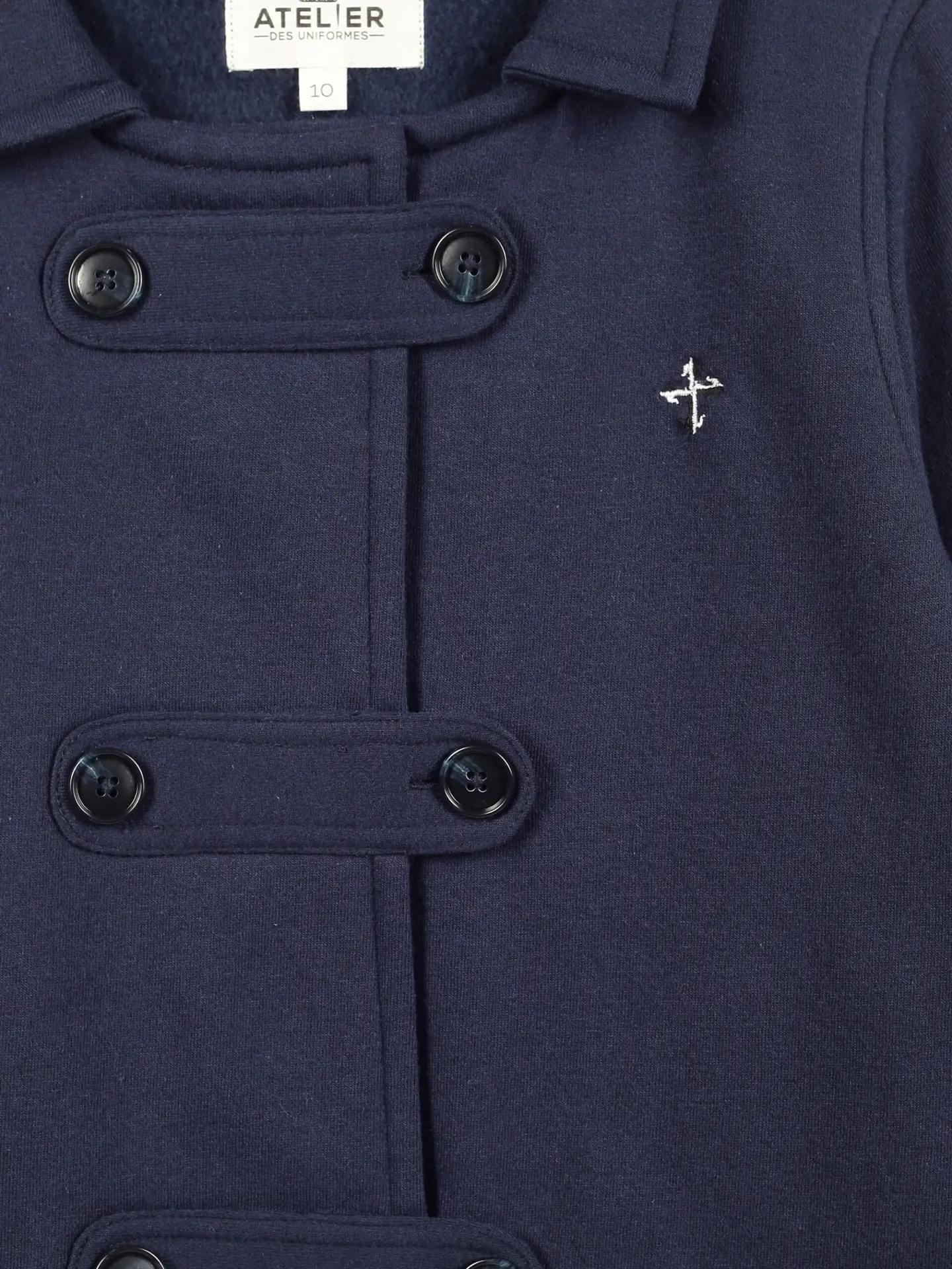 La veste d’école empire fille MAUD est disponible en bleu marine et bordeaux.